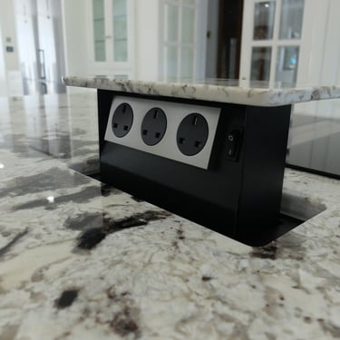 A modern style kitchen with a large island unit, painted cabinets and granite worktops.